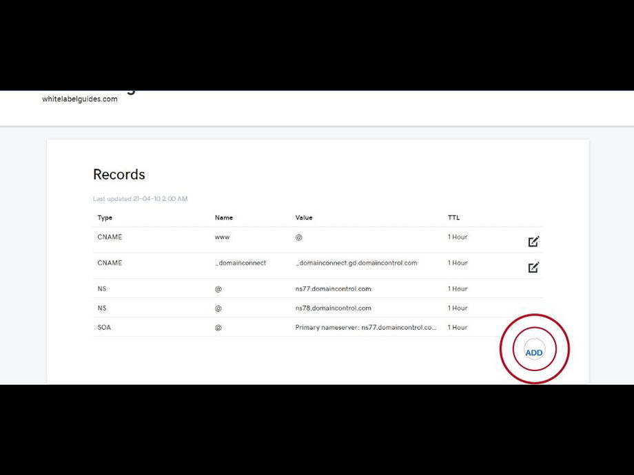 This time, our domain will be the www.whitelabelguides.com subdomain. Because it's a subdomain, we'll need to add a CNAME record instead of an "A" record. Select and copy the red URL and then switch to your registrar.